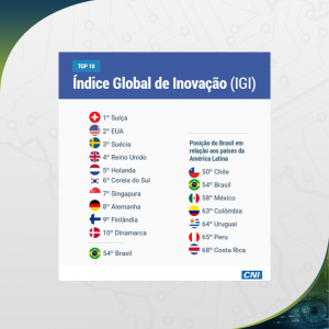 O Brasil ganhou três posições no Índice Global de Inovação (IGI) na comparação com 2021 e agora está no 54º lugar no ranking que abrange 132 países.